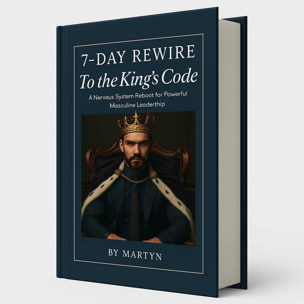 My name is Martin, and welcome to the 7-Day Rewire to the King’s Code, a powerful workbook designed to help men reset their nervous system, break free from survival mode, and reclaim their natural strength and leadership. Through seven transformative days of inner work, you’ll interrupt old patterns, rewire your mind and body, and step into your identity as a grounded, confident, purpose-driven man. This workbook isn’t about becoming someone new—it’s about remembering the king you’ve always been.